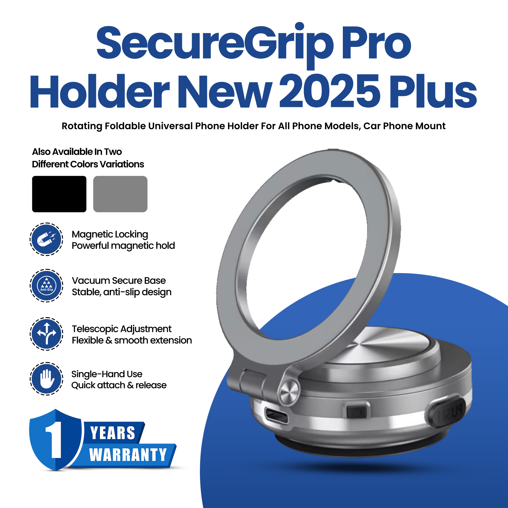 TGP™ SecureGrip Pro is the ultimate phone holder solution, combining stability and style in one sleek design. With its unbreakable hold and 360° adjustable view, it’s perfect for daily commutes, road trips, or everyday use. Built to keep your phone steady on bumpy roads and rough terrain, this holder offers safe, hands-free convenience anytime, anywhere. Designed to complement any car interior, it’s the stylish, reliable companion every driver needs